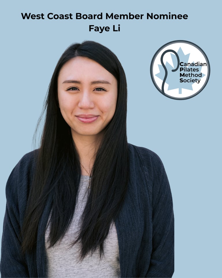 My name is Faye Li, and I am a Pilates studio owner and movement practitioner based in Vancouver, BC. I am nominating myself for the West Coast Director position because I believe deeply in Pilates as both an evolving practice and a growing professional field in Canada. I have worked within the industry long enough to witness its strengths, its gaps, and its immense potential. As a studio owner who works primarily one-on-one and one-on-two, I see every day what clients truly need from this profession: clarity, integrity, and consistent standards. I also see how much the public relies on us for rehabilitation, strength, longevity, and well-being and how urgently our industry needs unified, transparent guidance. Pilates in Canada is at a turning point. We can choose to solidify a meaningful foundation for growth, or continue allowing inconsistent training, outdated standards, and a lack of public education to define the landscape. I believe the next generation of instructors, clients, and studio owners deserve something stronger, clearer, and more unified.